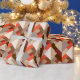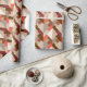Wrapping paper in a Mid-Century Modern design of layered triangles in shades of brown, taupe, beige, rust and camel, accented with mandarin orange