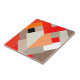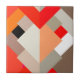Large Ceramic tile in a Mid-Century Modern design of layered triangles in shades of orange, tomato red, peach, and stone grey / grey, accented with white
