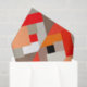 Tissue paper in a Mid-Century Modern design of layered triangles in shades of orange, tomato red, peach, and stone grey / grey, accented with white