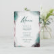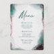 Modern Abstract Ethereal Watercolor Emerald Green Wedding Menus. This modern Design is beautify hand-painted with rich colours that are perfect for Winter or fall. Shown in the Emerald Wedding Colour Palette colorway of: Dark Emerald Green, Mauve Purple, Sangria Dark Plum, Rose Gold, and Raindrop Blue Green. With faux Gold Metallic glitter foil details, and a gorgeous signature script font with tails, the ethereal watercolor wedding collection is sure to make your wedding memorable and beautiful!