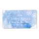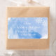 Modern abstract watercolor splash blue winter wedding label featuring a hand painted watercolor paint splash with texture in tones of blue, trees in white with snow , snowflakes and text in white. This elegant and stylish casual wedding design is a completely customizable template perfect for your winter wedding. Note that this is only an image of watercolor and not real texture.