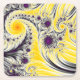 This coaster features an abstract swirly fractal in yellow, black and purple.