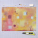 A contemporary modern abstract painting in warm colours. Yellow ochre, pink, burnt orange and cream. Original art by Nic Squirrell.
