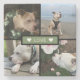 Modern design with 4 photos in a grid with center text template in dusty green box "love" with hearts stone coaster.