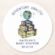Modern Adventure Travel Globe Baby Shower Round Paper Coaster