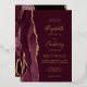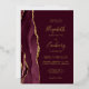 The left-hand edge of this elegant modern wedding invitation features a burgundy red watercolor agate border trimmed with faux gold glitter. The customizable text combines handwriting, copperplate and italic fonts in real gold foil on a burgundy red background. The reverse side features a matching burgundy and gold agate design.