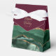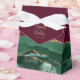 This elegant modern favour box features an emerald green watercolor agate design trimmed with gold faux glitter. Personalize it with the names of the bride and groom in gold-coloured handwriting script over a large ampersand on a burgundy red background, along with the wedding date below.