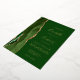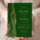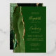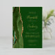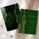 The left-hand edge of this elegant modern wedding invitation features a hunter green watercolor agate border trimmed with faux gold glitter. The customizable text combines handwriting, copperplate and italic fonts in real gold foil on a hunter green background. The reverse side features a matching green and gold agate design.