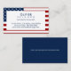 front-side: your name and address (or any other additional information) and custom profession... white rectangle with the american flag as a frame ... back-side: solid blue colour with some custom words... a modern and patriotic visual concept for an elegant presentation