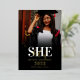 She did it! You can announce it loud and proud to all of your family and friends. This modern yet elegant design is perfect for any graduate! Share your 2 favourite photos and details of your special celebration with this card. The foil details add a touch of elegance to your highly anticipated party!