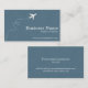 These travel business cards are perfect for travel agents, travel agencies, pilots, world travelers, travel bloggers, and more. The card features a steel blue textured background print, with an airplane with air trail on the front. There is room for your business name (or your name), a tagline and a website. The back has room for your name and contact details.