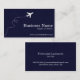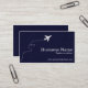These travel business cards are perfect for travel agents, travel agencies, pilots, world travelers, travel bloggers, and more. The card features a dark blue textured background print, with an airplane with air trail on the front. There is room for your business name (or your name), a tagline and a website. The back has room for your name and contact details.