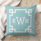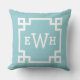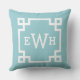 Modern Aqua Blue Greek Key Custom Monogram Throw Pillow