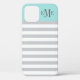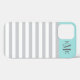 Modern Aqua Blue Grey Stripes Custom Monogram Case-Mate iPhone Case