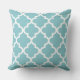 Modern Aqua Blue Moroccan Quatrefoil Pattern Throw Pillow