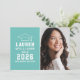 Announce your high school or college graduate in style with this graduation announcement and party invitation. Two-sided card features a senior portrait of the graduate with grad cap and simple and modern white typography design. Aqua or robin's egg blue background can be changed to a different colour with the "Customize It" feature, then Edit / Background to select another colour.