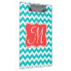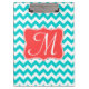 Modern Aqua Coral Chevron Zig Zag Stripe Fabric Print Pattern Monogram Initial Clip Board Personalized