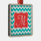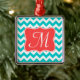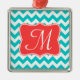 Modern Aqua Coral Chevron Zig Zag Stripe Fabric Print Pattern Monogram Initial Christmas Ornament Personalized
