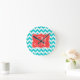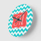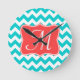 Modern Aqua Coral Chevron Zig Zag Stripe Fabric Print Pattern Monogram Initial Wall Clock Personalized