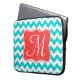 Modern Aqua Coral Chevron Zig Zag Stripe Fabric Print Pattern Monogram Initial 15" Laptop Case Bag Personalized