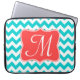 Modern Aqua Coral Chevron Monogram 15" Laptop Case