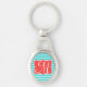 Modern Aqua Coral Chevron Zig Zag Stripe Monogram Initial Key Chain