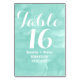 Modern aqua green watercolor table number