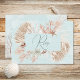 This wedding response card design features a beautiful pale aqua turquoise background with an underwater texture feel, surrounded by dusty blue, tan, brown, peach, and white shells, coral, and sea life. Perfect for the destination or beach wedding. Created by Simply Farmhouse Press.