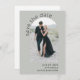 Beautiful simplicity and artistic boho style make this modern arch wedding save the date card pop with appeal. it features an arch shaped photo template on the front of the card to upload your desired photo. There is a text template on the front of the card to personalize with the bride and groom's names and planned wedding date. The back of this card has a sample message with additional details to personalize. Shown here with a light sage green background, this card is available in other colours as well.