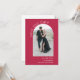 Beautiful simplicity and artistic boho style make this modern arch wedding save the date card pop with appeal. it features an arch shaped photo template on the front of the card to upload your desired photo. There is a text template on the front of the card to personalize with the bride and groom's names and planned wedding date. The back of this card has a sample message with additional details to personalize. Shown here with the popular new magenta background, this card is available in other colours as well.