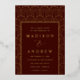 Elegant, art deco wedding invitation featuring a gold foil arch pattern with a burgundy background. Personalize the modern wedding invitations with your names and wedding details in gold foil lettering.