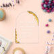 Make a modern statement with this transparent acrylic-style wedding invitation, designed in a highly sought-after arch shape and finished with elegant faux gold detailing. The transparent background creates a light, contemporary feel, while soft white text provides a refined contrast that translates beautifully in styled flat-lays and wedding detail photography.
