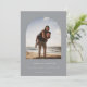 Modern arch frame, flat save the date photo card. Minimalist typography design style template with solid grey colour backgrounds.