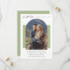 Modern and stylish wedding save the date announcement card features a modern and minimalistic design with an arch shaped photo framed by another geometric colour block shape in sage / olive green - which complements the printed background on the back side of the card. Personalize the simple and elegant custom text with all of the important details, including the wedding date, bride and groom names, ceremony location, and wedding website. Classic black and white colour scheme with green accent colour.