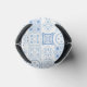 This modern classic design features a hand-painted modern blue and white tile print background, with the cobalt and pale blue text on top of a simple arch shape, and surrounded by watercolor lemons, leaves and blossoms.