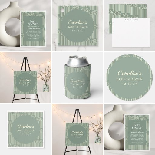 Modern Arch Line Art Sage Green Baby ShowerDesigned by Opal Ellery