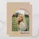 This contemporary and stylish graduation invitation is ideal for any graduate. It showcases gold typography in shimmering gold foil and includes a photo of the graduate on the front side, in modern and trendy arch frame.