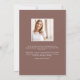 Simple and modern photo graduation announcement features a vertical or portrait oriented photo in a unique arched layout, on an earth toned clay background. The graduate's name and graduation year appear at the top, with the school name at the lower right. Add a personal message to the back, along with an additional photo.