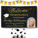 A modern and elegant graduation welcome / banner sign to surprise your new grad and welcome your guests. Tells the story of where she has graduated from and the college / university that she will be attending. It features a calligraphy lettering and a photo of the graduate. Much to personalize to make appropriate for your own event. Any design questions, just send a chat and we'll be delighted to assist.