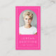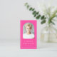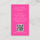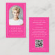 Modern, vertical, hot pink or custom colour business cards with your arch shaped photo, name and title on the front, with a thin white border along the edge of the card. Customizable template fields for your contact information, social media and QR code on the back. You can change background and font colours, move and resize elements with the design tool.