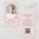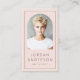 Modern, vertical, light blush pink or custom colour business cards with your arch shaped photo, name and title on the front, with a thin grey border along the edge of the card. Customizable template fields for your contact information, social media and QR code on the back. You can change background and font colours, move and resize elements with the design tool.