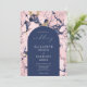 Modern Arch Pink Navy Blue Marble Wedding Invitation