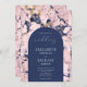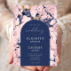 This modern design features a navy blue arch shape on a pink, navy blue and gold marble background. The word "wedding" appears in elegant white script. Personalize the invitation with the names of the bride and groom in a combination of serif and sans serif typography and the wedding details in italics.