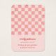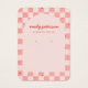 This jewellery display card features a pink chequered background and a modern archway shape to display your jewellery. Add your company info and social media or website to the back side of the card.
