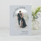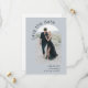 Beautiful simplicity and artistic boho style make this modern arch wedding save the date card pop with appeal. It features an arch shaped photo template on the front of the card to upload your desired photo. There is a text template on the front of the card to personalize with the bride and groom's names and planned wedding date. The back of this card has a sample message with additional details to personalize, along with a QR code template for making it easy for guests to view your wedding website. Shown here with a light dusty blue background, this card is available in other colours as well.