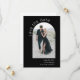 Beautiful simplicity and artistic boho style make this modern arch wedding save the date card pop with appeal. It features an arch shaped photo template on the front of the card to upload your desired photo. There is a text template on the front of the card to personalize with the bride and groom's names and planned wedding date. The back of this card has a sample message with additional details to personalize, along with a QR code template for making it easy for guests to view your wedding website. Shown here with a stylish black background, this card is available in other colours as well.