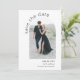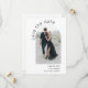 Beautiful simplicity and artistic boho style make this modern arch wedding save the date card pop with appeal. It features an arch shaped photo template on the front of the card to upload your desired photo. There is a text template on the front of the card to personalize with the bride and groom's names and planned wedding date. The back of this card has a sample message with additional details to personalize, along with a QR code template for making it easy for guests to view your wedding website. Shown here with a plain white background, this card is available in other colours as well.