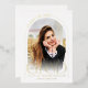 This real gold foil simple minimalist graduation announcement features a photo, arch frame and elegant modern typography.