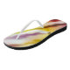 Flip flops featuring a modern art painted wave pattern in vibrant colours.