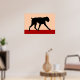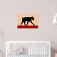 A minimalist modern art design of a silhouette of a boxer dog in black and red colors.